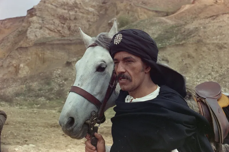 În rolul lui Selim Pașa din „Mihai Viteazul” (1971), împreună cu calul care-i putea aduce amputarea unui picior - Foto:Facebook/Studiourile Buftea