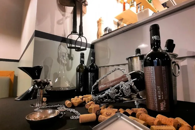 Dacă tot am ales un vin roșu de la Crama „1000 de Chipuri” pentru clienți, de ce să nu profite și angajații noștri de experiența vinului? Povestea „1000 de Chipuri” începe în vie și se continuă la cramă. În Dealu Mare, la Urlați, sunteți invitați să degustați vinurile cramei direct din tanc și barique, într-o atmosferă cât se poate de relaxată. Hotelul cramei (cunoscut și sub numele de „Casa Colinelor”) vă pune la dispoziție 20 de spații de cazare B&B.