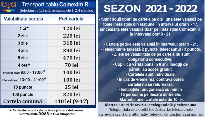 În România, deocamdată, se poate schia la tarife mai accesibile, de exemplu, la Azuga (Sorica – 2,1 km și Cazacu – 1,9 km) și Straja, unde ski pass-ul pentru o zi este 140 de lei, adică 28 €/zi. De asemenea, cel puțin pentru moment, ski pass-ul în Poiana Brașov costă 150 de lei pe zi (30 €/zi), dar nu se schiază încă.