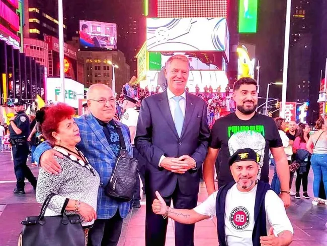 Sorinel Puștiu, viral pe Facebook. Manelistul s-a pozat cu președintele Iohannis în Times Square