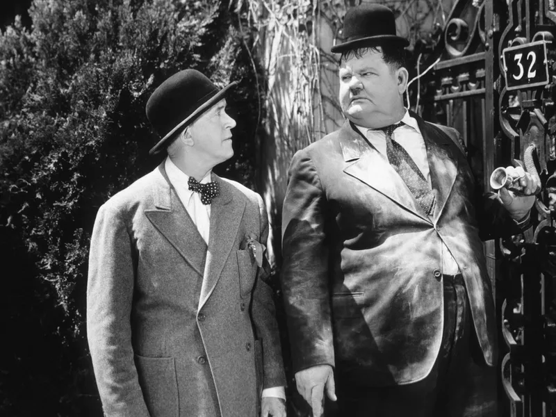 Hal Roach, un producător american de filme și televiziune, i-a determinat pentru prima dată pe Laurel și Hardy să joace împreună în filmul din 1921, „The Lucky Dog”. Hardy avea douăzeci și nouă de ani, înălțimea de 1.85 și 130 de kilograme. Laurel avea treizeci și trei de ani și era mai scund și mai slab. De la primul film împreună, Laurel și Hardy s-au completat perfect. Laurel se prefăcea că plânge și-și smulgea părul subțire. Hardy se comporta ca și cum ar fi fost supărat și ar încerca să-l învețe pe Laurel cum să facă lucrurile corect - ceea ce însemna de obicei să facă lucrurile în mod greșit!