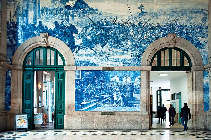 Interiorul stației este acoperit cu 20.000 de plăci decorative alb-albastru azulejo, care creează un mozaic cu momente din istoria Portugaliei.