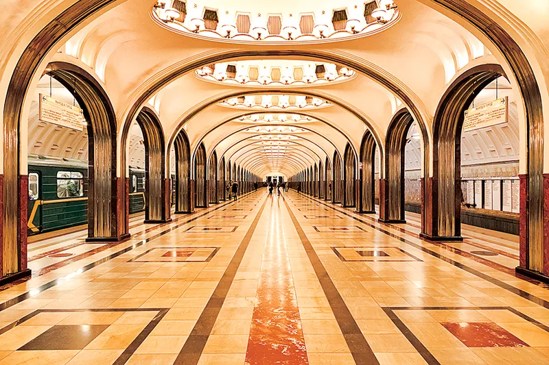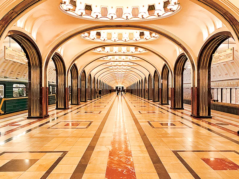 Botezată după piața situată deasupra ei (și poetul Vladimir Maiakovski), această stație Art Deco din 1938, proiectată de Alexei Dușkin, aduce o nouă abordare a arcadelor și coloanelor clasice,construindu-le din oțel inoxidabil.