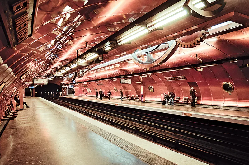Reproiectată în 1994, zidurile de cupru și accentele steampunk îmbracă tunelurile acestei stații de inspirație științifico-fantastică.