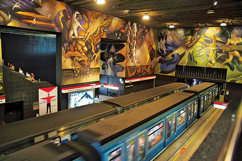 Vizitatorii acestei stații din capitala Chile nu pot rata uriașa pictură murală intitulată Memoria Visual de una Nación (Memoria vizuală a unei națiuni), de Mario Toral.