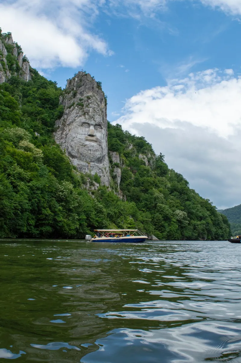 „Chipul lui Decebal”, cel mai faimos dintre monumentele dedicate dacilor în România, poate fi văzut pe malul stâng al Dunării, în apropiere de Orșova. E cea mai înaltă sculptură din Europa.