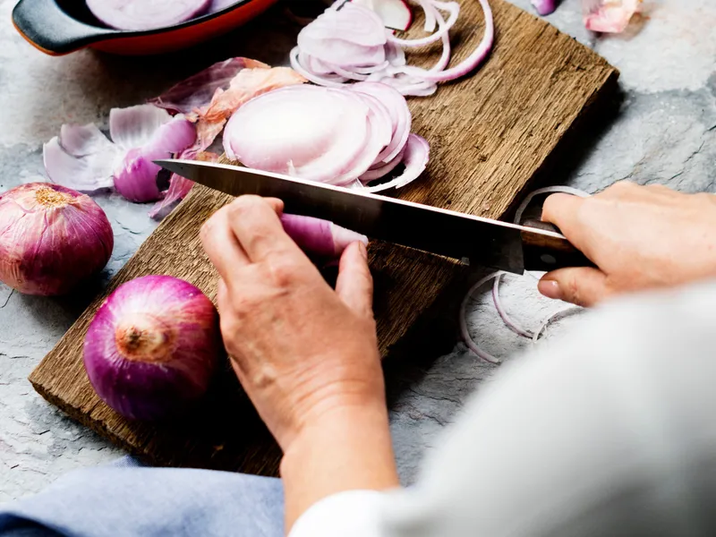 Tacâmul din bucătărie care reduce mirosul de ceapă și lacrimile. Trebuie doar să o ții în mână