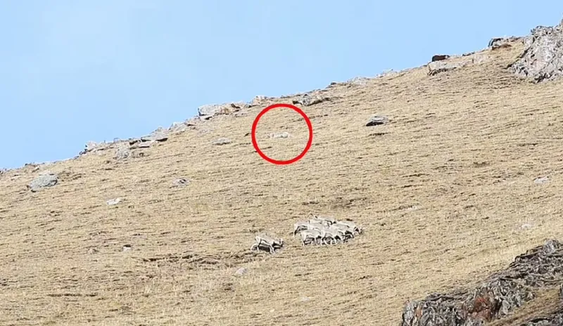 Un leopard de zăpadă ascuns a fost surprins de camera de filmat, demonstrând că este maestrul suprem al deghizării.