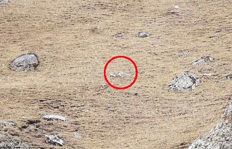 Prădătorul poate fi văzut perfect camuflat în locuri precum o câmpie ierboasă, o zonă stâncoasă și o porțiune de pământ maro închis din provincia Sichuan din China.