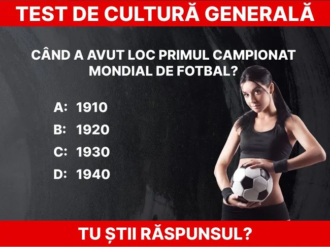 Test de cultură generală. ”Când a avut loc primul Campionat Mondial de Fotbal?”. Știi răspunsul?