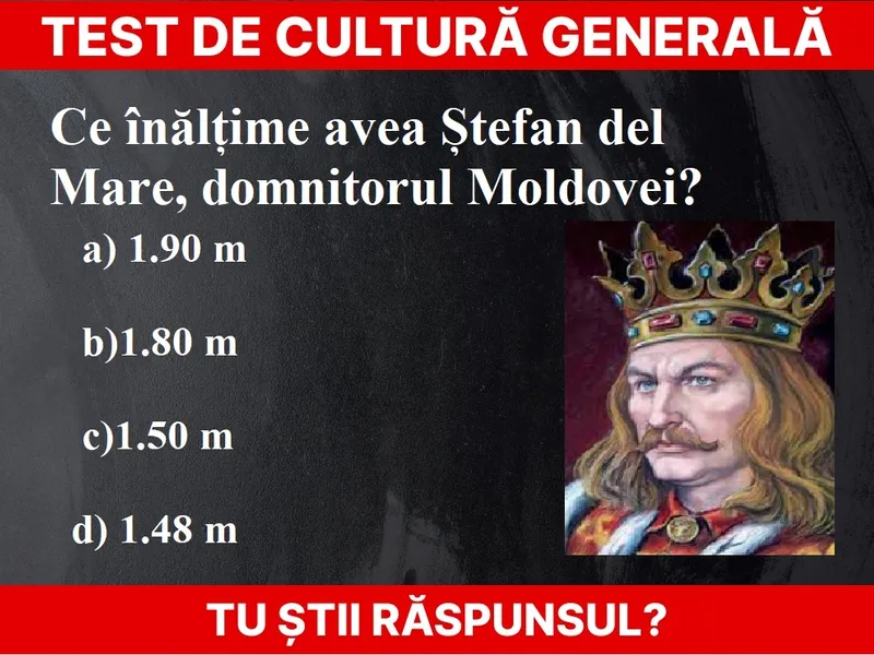 Testul de cultură generală de azi este inspirat din istorie. Mai bine spus din viața voievodului Ștefan cel Mare. Există tot felul de mituri despre înfățișarea lui inclusiv unul despre întălțime.