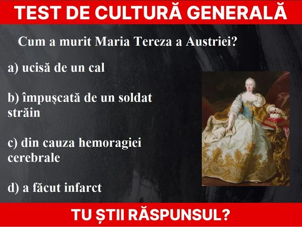 Testul de cultură generală de azi este inspirat din viața Mariei Tereza a Austriei. De ce a murit împărăteasa? este vreun adevăr în legenda despre cai?