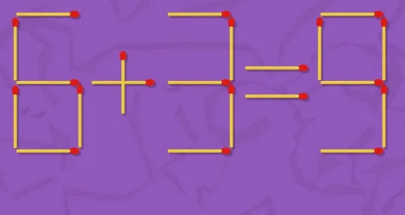 Așadar, luăm un băț de la cifra 8 și îl punem la cifra 3 de după ehal. Astfel, avem ecuația corectă: 6+3=9.