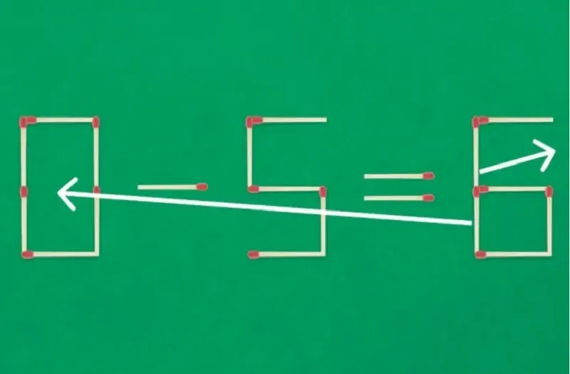 Test de inteligență. Avem ecuația 0-5=6 din bețe de chibrit. Găsiți forma corectă cu două mutări