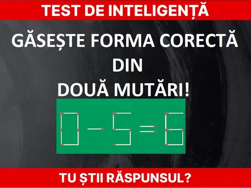 Citește și: Test de inteligență. Avem ecuația 4+5=3 din bețe de chibrit. Adaugă un băț și găsește forma corectă