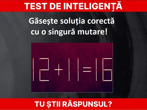 Citește și: Test de inteligență. Avem ecuația 0-5=6 din bețe de chibrit. Găsiți forma corectă cu două mutări