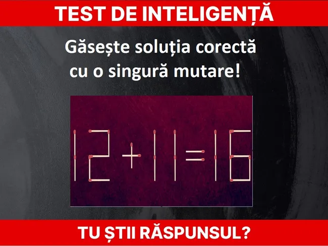 Un test de inteligență vine să verifice, celor care acceptă provocarea, abilitățile de rezolvare a problemelor. Puteți rezolva ecuația din bețe de chibrit printr-o singură mutare?