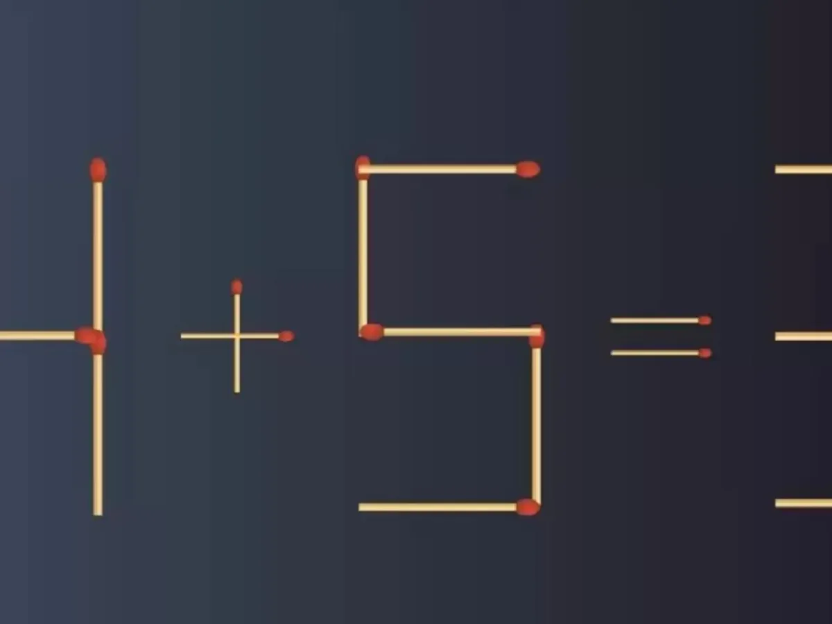 Test de inteligență. Avem ecuația 4+5=3 din bețe de chibrit. Adaugă un băț și găsește forma corectă