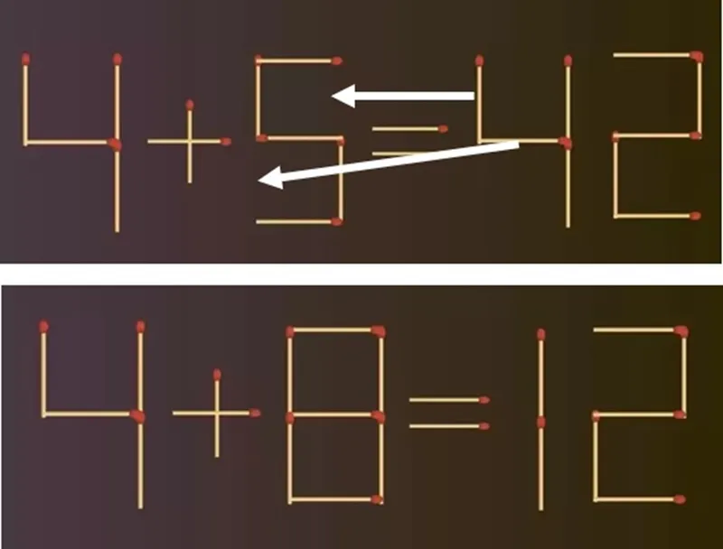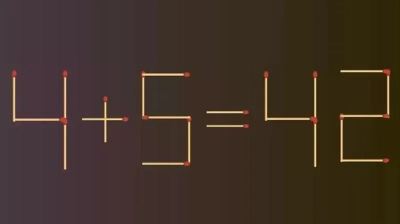Puzzle-urile cu chibrituri necesită să priviți cu atenție ecuația pentru a vedea ce este greșit în ecuație. Puzzle-ul va indica câte bețe de chibrit trebuie să mutați, să adăugați sau să eliminați pentru a remedia ecuația. Acest puzzle vă cere să mutați doar 2 bețe de chibrit pentru a face ecuația corectă, deoarece în mod clar, 4 + 5 nu este egal cu 42.