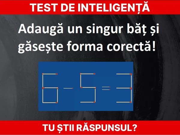 Citește și: Test de inteligență. Avem ecuația 8-8=2 din bețe de chibrit. Soate unul și găsește forma corectă