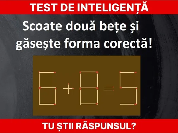 Citește și: Test de inteligență. Avem ecuația 9 + 3 x 2 =2 din bețe de chibrit. Mută unul și află forma corectă