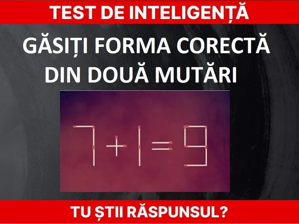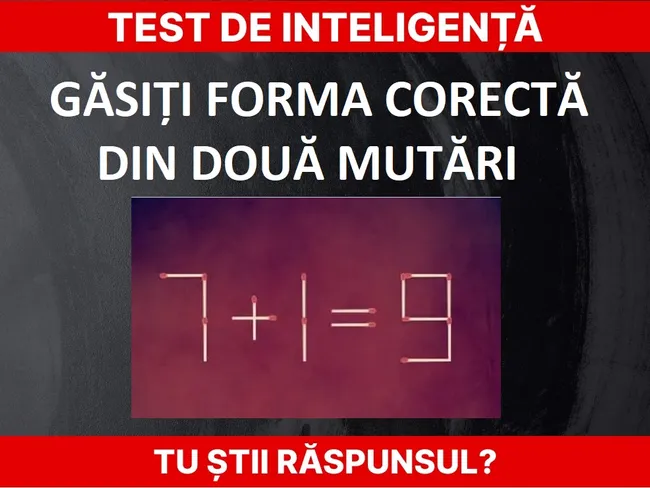 Citește și: Test de inteligență. Avem ecuația 8-8=2 din bețe de chibrit. Soate unul și găsește forma corectă