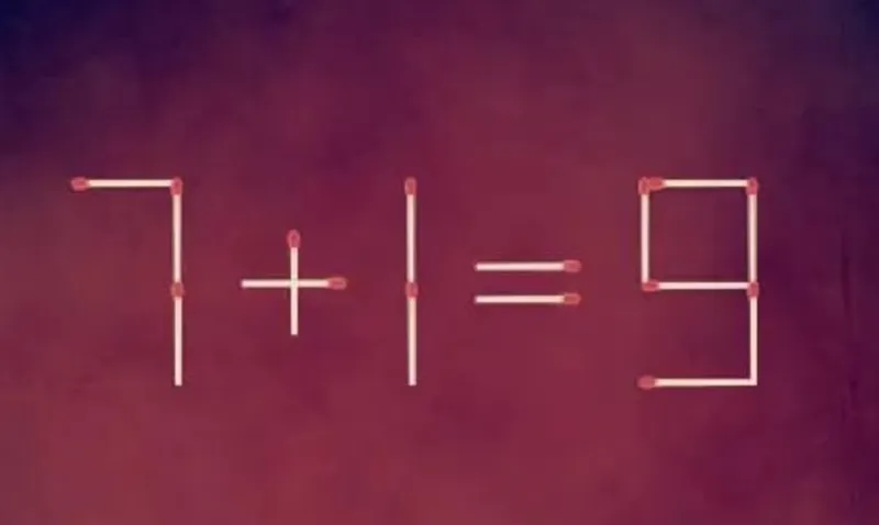 Test de inteligență. Avem ecuația: 7+1=9 din bețe de chibrit. Găsește forma corectă din două mutări