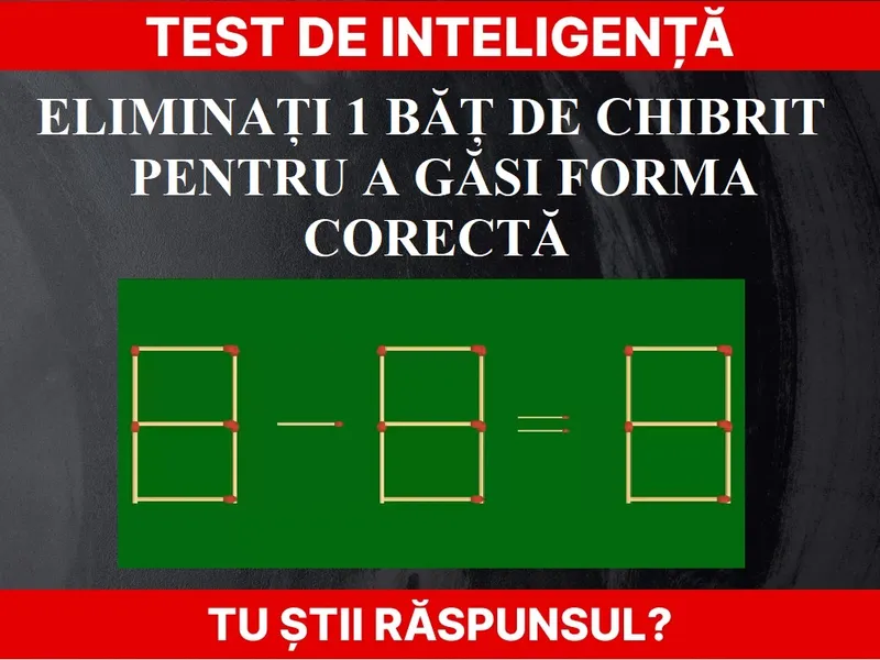 Citește și: Test de inteligență. Avem ecuația: ”1+3=6” din bețe de chibrit. fă o mutare și află soluția corectă