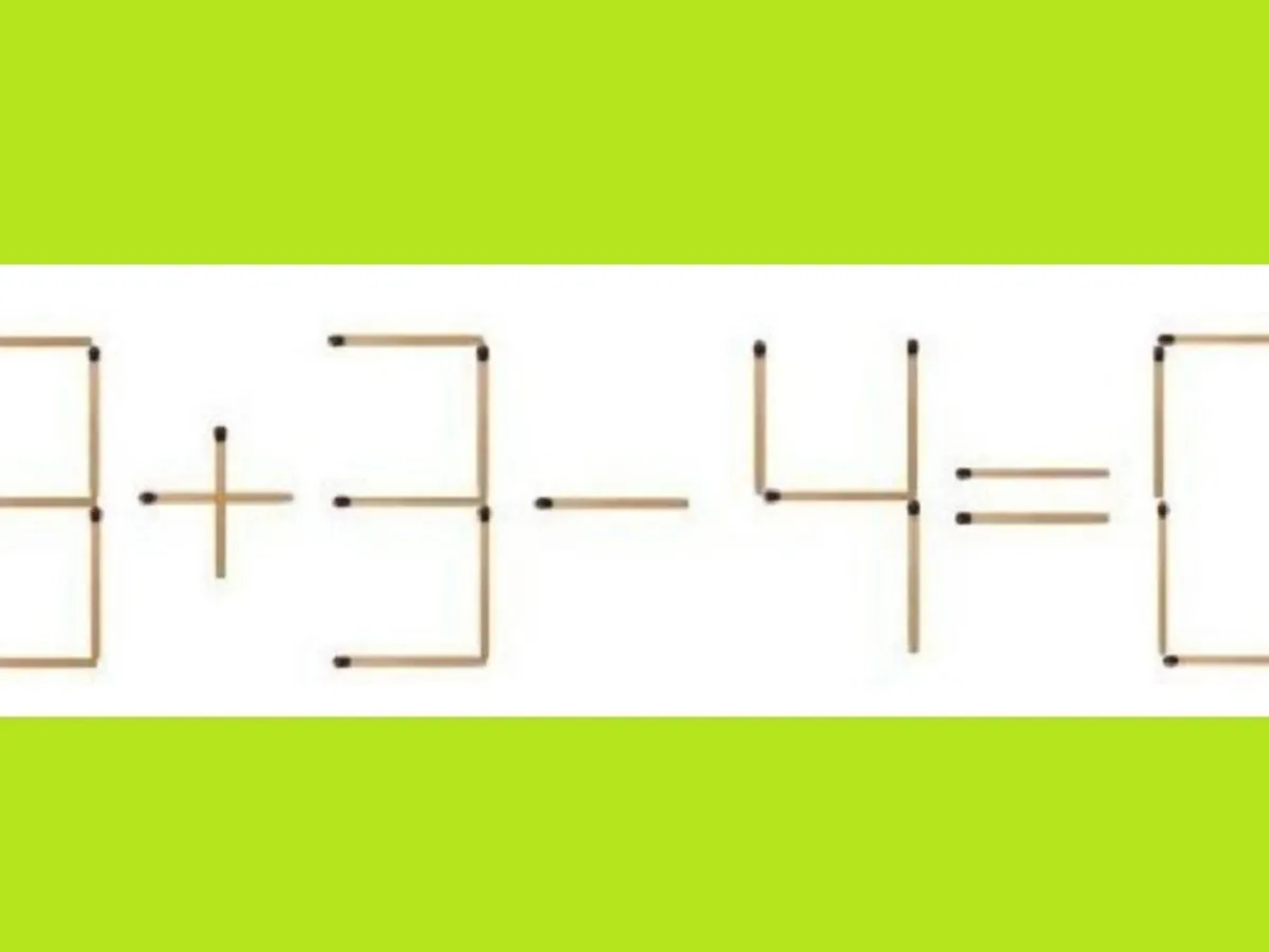 Test de inteligență. Avem ecuația: 8+3-4=0 din bețe de chibrit. Mută unul și găsește forma corectă