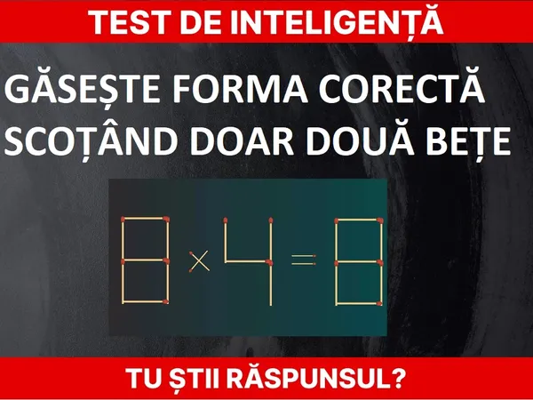 Citește și: Test de inteligență. Avem ecuația 8-8=2 din bețe de chibrit. Soate unul și găsește forma corectă