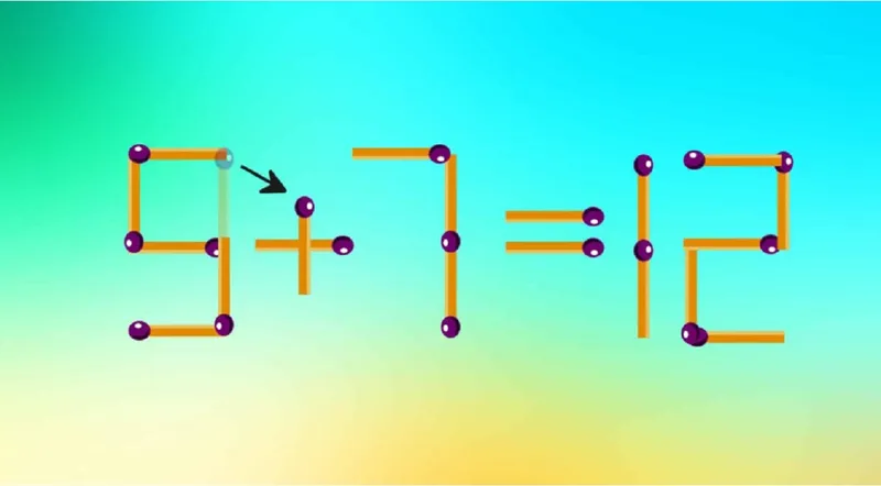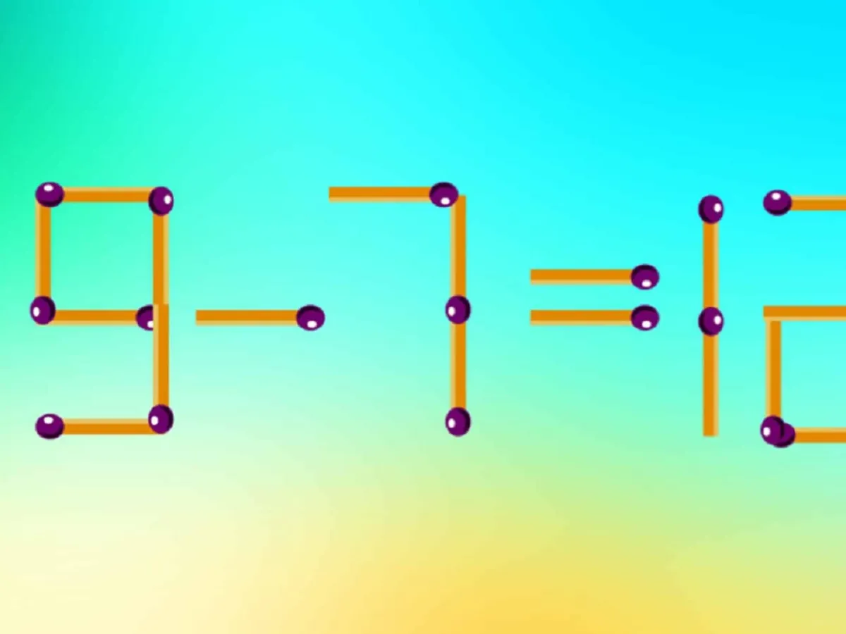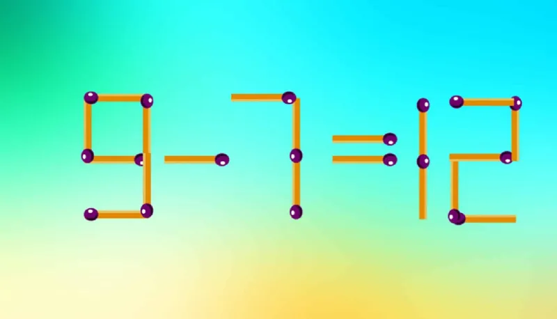 Test de inteligență. Avem ecuația: 9-7=12. Mută un singur băț și găsește forma corectă rapid