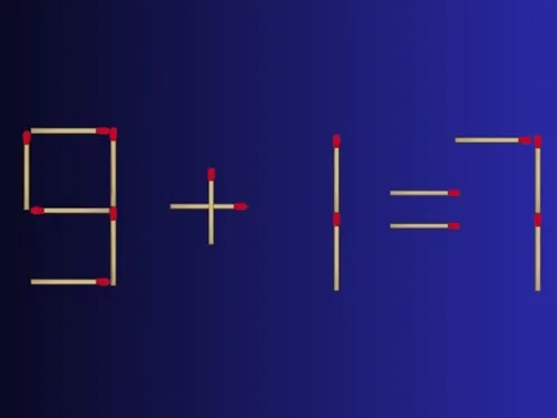 Avem ecuația din bețe de chibrit: 9+1=7. Este greșită. Dar dacă mutați un singur bețișor puteți găsi forma corectă. Suntem siguri că mulți ați descoperit răspunsul. Dacă da, sunteți genii.