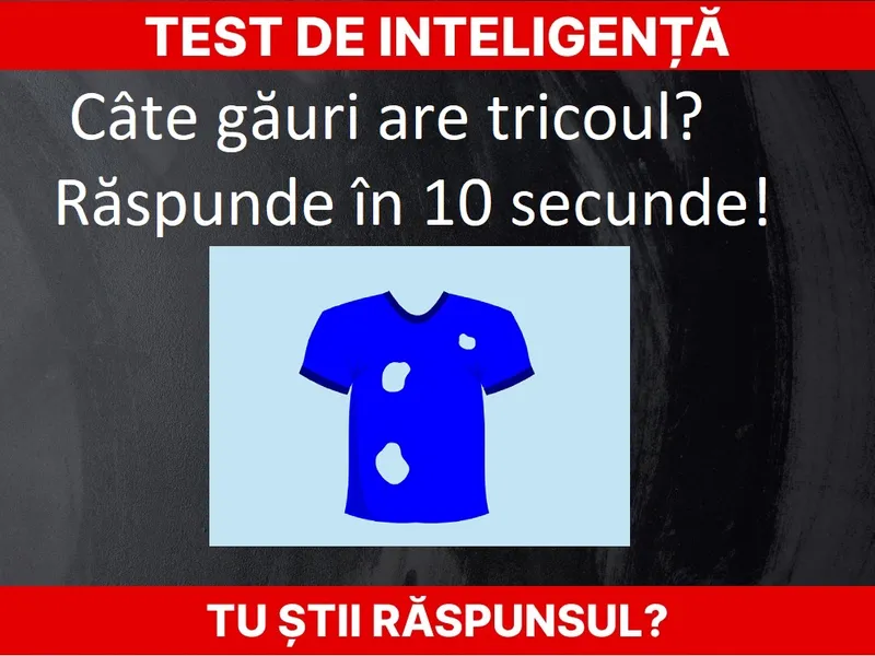 Citește și: Test de inteligență. Câte găuri are acest tricou? Ești sigur că ai răspunsul corect? 90% greșesc