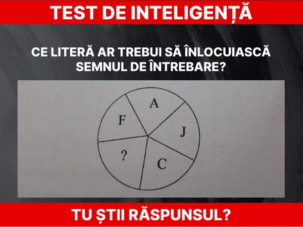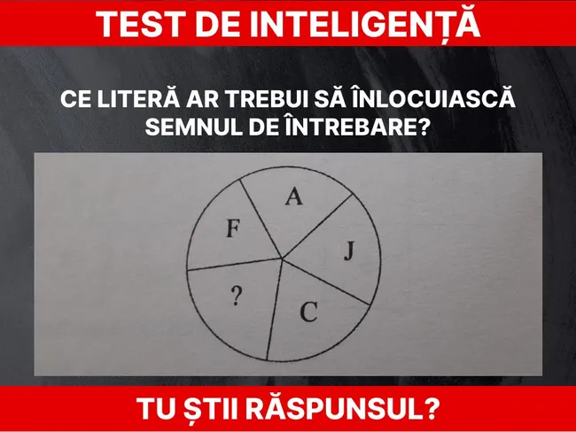 Citește și: Test de inteligență. ”Ce literă ar trebui să înlocuiască semnul întrebării” Tu ai găsit răspunsul?