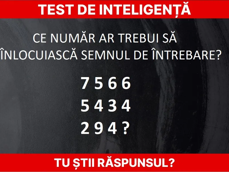 Citește și: Test de inteligență. ”Găsește logica șirului de numere și spune ce cifră lipsește!” Poți să rezolvi?