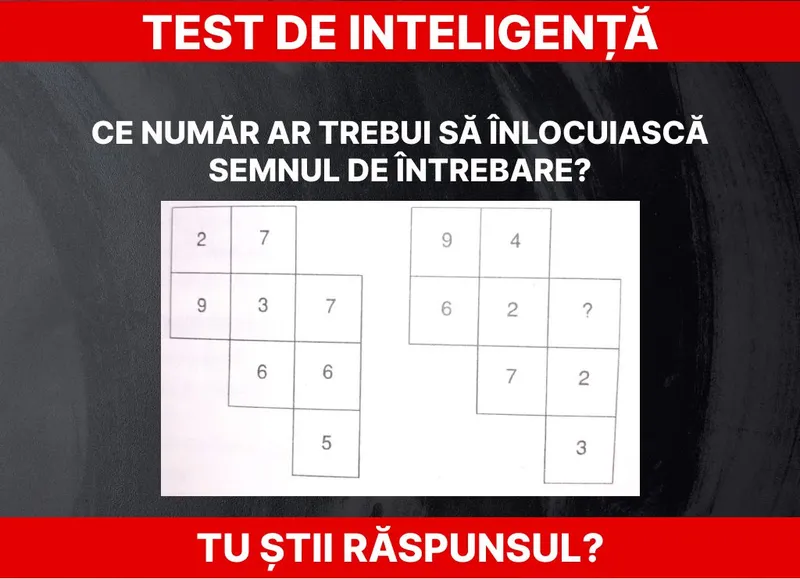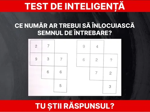 Vă propunem un test de inteligență simplu. ”Ce număr ar trebui să înlocuiască semnul de întrebare?” Atenție, trebuie să vă concentrați puțin. Nu este deloc greu.