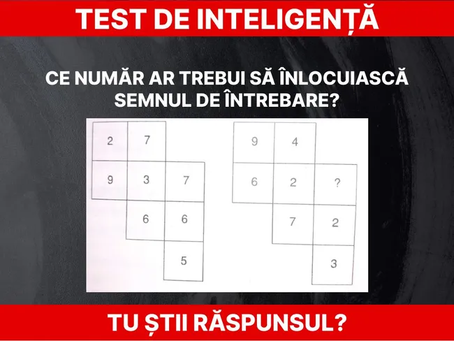 Citește și: Test de inteligență: ”Ce număr lipsește din din figură”. Ai 3 minute să dai răspunsul. L-ai găsit?