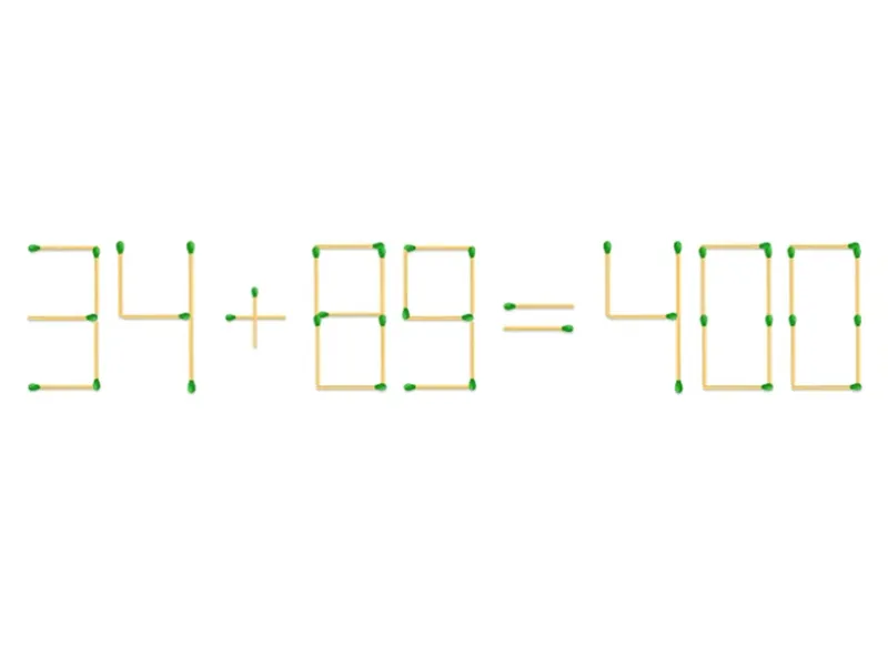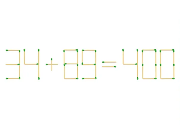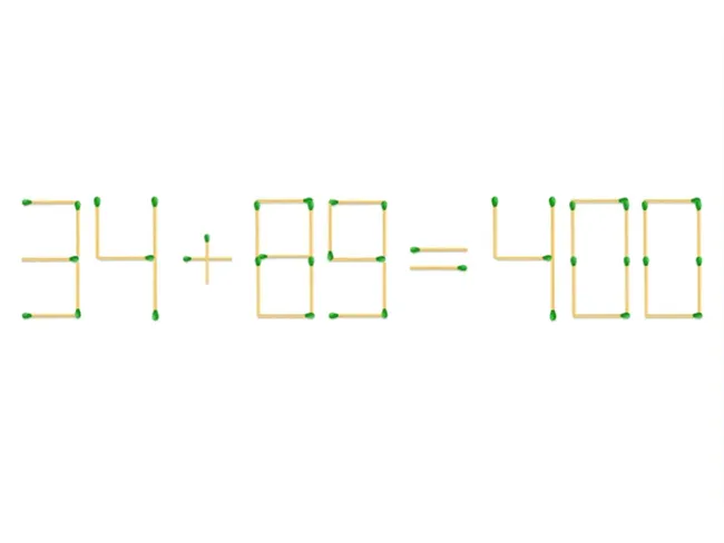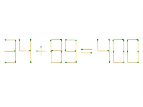 Se dă ecuația greșită 34+89=400. Numerele sunt formate din bețe de chibrit. Provocarea este să muți un singur băț de chibrit pentru a corecta ecuația. Ai doar 10 secunde la dispoziție.
