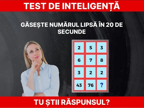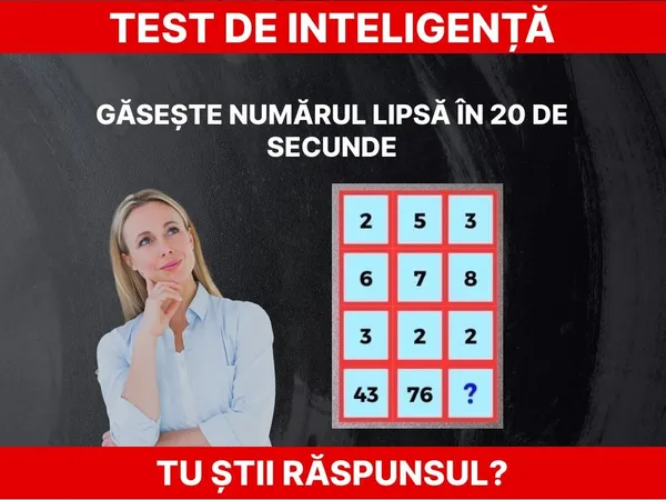 Vă propunem un test de inteligență pe care cei cu un IQ peste medie îl pot rezolva în mai puțin de 20 de secunde. Suntem siguri că deja ai descoperit care este răspunsul corect.