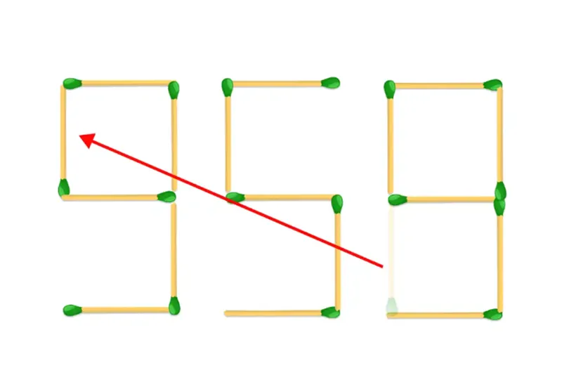 Soluția era simplă. Tot ce trebuia să faci era să elimini un chibrit de la cifra 8, transformând-o în cifra 9, iar bățul să-l pui la cifra 3, pentru a o transforma în 9. Astfel, obții numărul 959, cel mai mare număr posibil care poate fi format prin mutarea unui singur chibrit de la numărul 358.