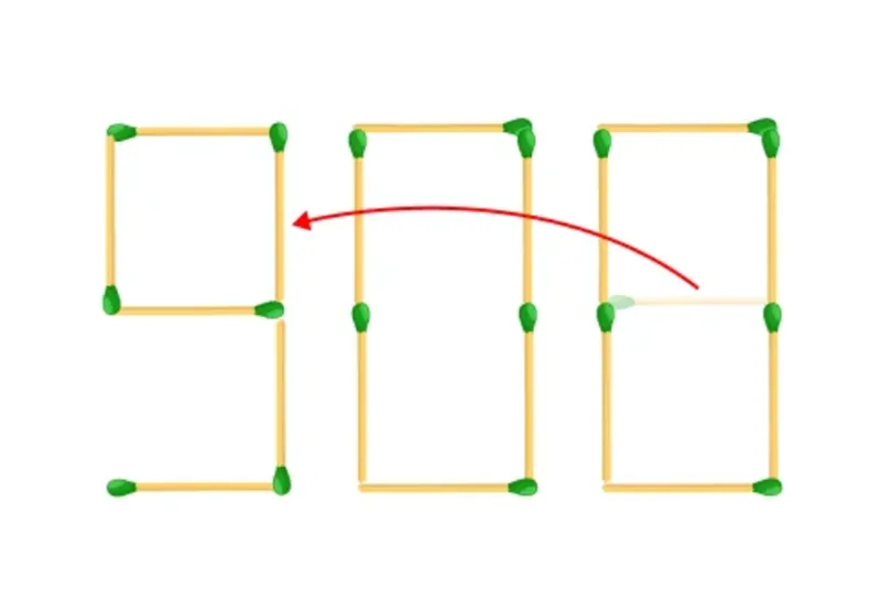 Cel mai mare număr pe care îl poți forma, mutând un singur chibrit, este 900.