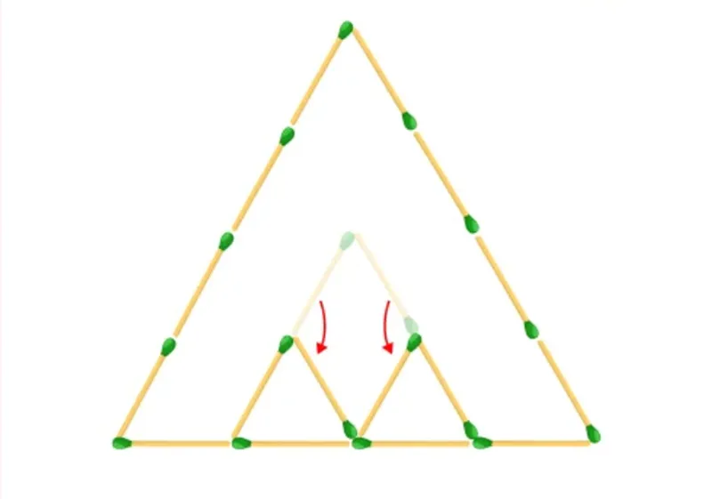 Uită-te la imaginea de mai jos și gândește-te cum poți muta două chibrituri pentru a forma trei triunghiuri. Ai 12 secunde la dispoziție. Cei care rezolvă în timpul acordat au un IQ ridicat.
