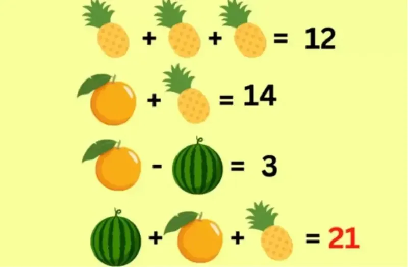 Dacă o portocală și un ananas împreună sunt 14, care este valoarea portocalei? Examinați exercițiul, luând notă de micile detalii - răspunsul vă așteaptă la sfârșitul acestui articol.