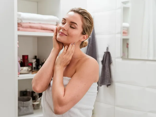 Curăță gâtul și zona decolteului, pentru a îndepărta impuritățile și excesul de sebum.