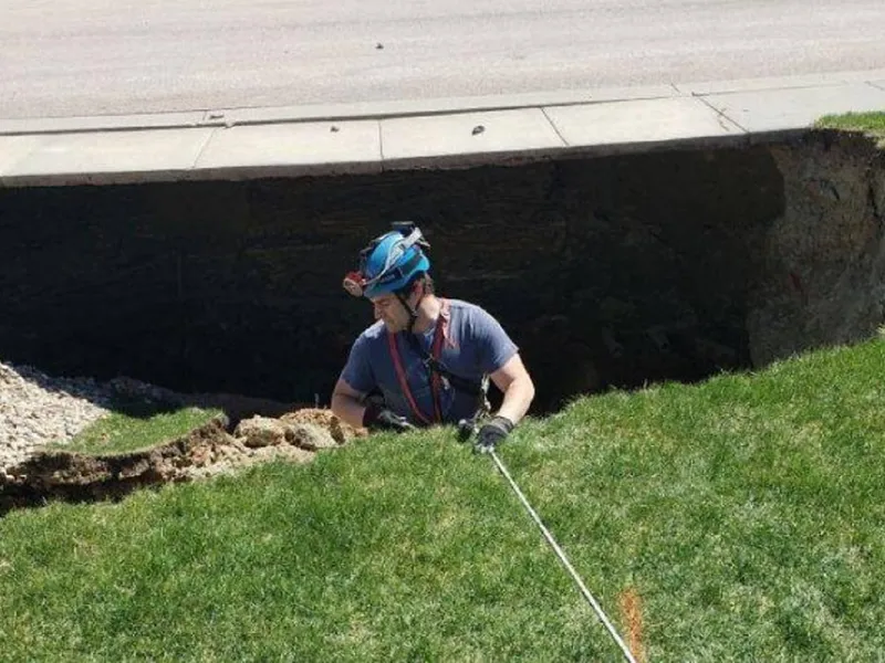 Imediat, șase familii au fost evacuate. Acest număr s-ar dubla odată ce experții ar determina cauza dolinelor. Dar pentru a găsi acel răspuns nu a fost nevoie de ofițeri de poliție, ci de speologi.
