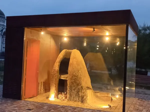 Cuptorul a fost adus cu eforturi mari în noul spaţiu, iar în jurul acestuia a fost amplasat pavilionul de protecţie.