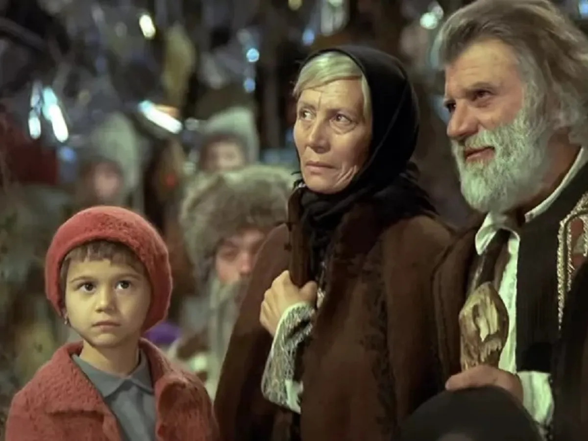 Lizuca, alături de bunicii ei din film, interpretați de actorii Ernest Maftei și Elena Drăgoi - Foto: arhiva