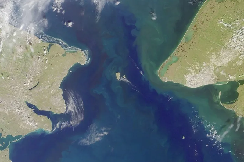 Văzute din satelit, cele două insule Diomede se află chiar în mijlocul Strâmtorii Bering ce separă Rusia de Alaska americană - Foto: Profimedia Images/NASA