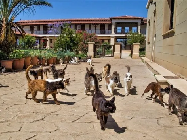 Pisicile reprezintă și acum o prezență obișnuită la mănăstirea ctitorită acum 1.700 de ani - Foto: estateofcyprus.com