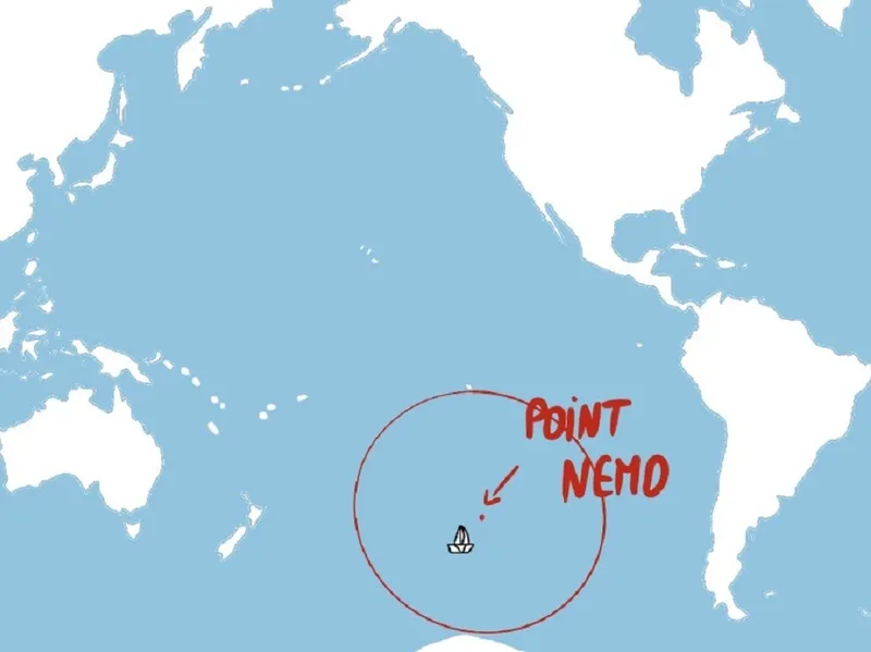 Pentru a vă imagina cât de mare este zona, trebuie să știți că cele mai apropiate ținuturi de Point Nemo se află la 2.700 km distanță: Insula Ducie din Insulele Pitcairn, la nord, insulița Motu Nui de pe Insula Paștelui, la nord-vest, și Insula Maher din Antarctica, la sud.
